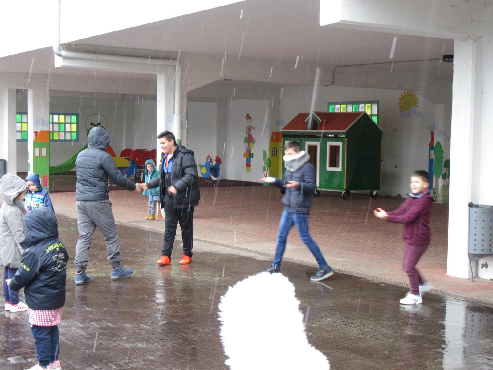 Hoxe nevou no cole; foi pouquiño tempo pero os poucos vagalumes que estabamos saímos ao patio para pasar uns minutiños "entre a neve"