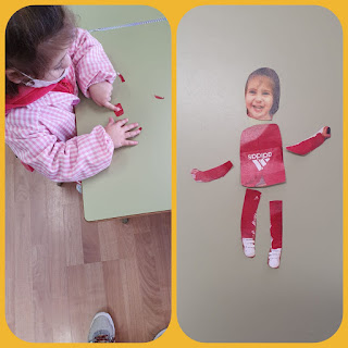 As vagalumes de 4º de infantil hoxe traballamos as partes do corpo. Fixémolo dunha forma superdivertida. A profe o outro día sacounos fotos de corpo enteiro e hoxe dóunolas pero... cortadas en cabeza, tronco (barrigola), brazos e pernas (extremidades) coma se fosen pezas dun puzzle. En realizade, tratábase de facer un puzzle, o puzzle do noso corpo. Que diver!!!